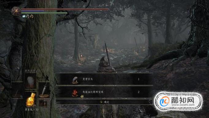 击败两个黑暗骑士,就可以拾取黑暗骑士掉落的物品,有一定几率可以获得契约道具发青舌头。