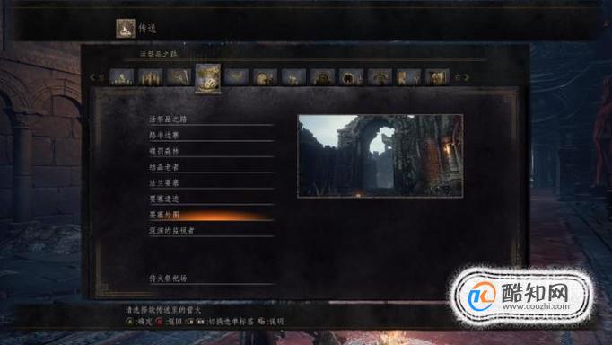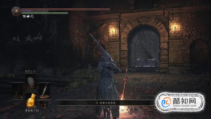首先,我们进入到黑暗之魂3游戏中,找到任意一个存档传送点,传送到地图——要塞外围。