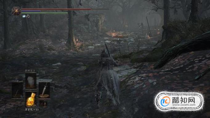 等待大约30秒,会有两个黑暗骑士从要塞小门旁边进入森林,并与森林中的龙人发生战斗,我们可以拾取两者战斗后掉落的物品。