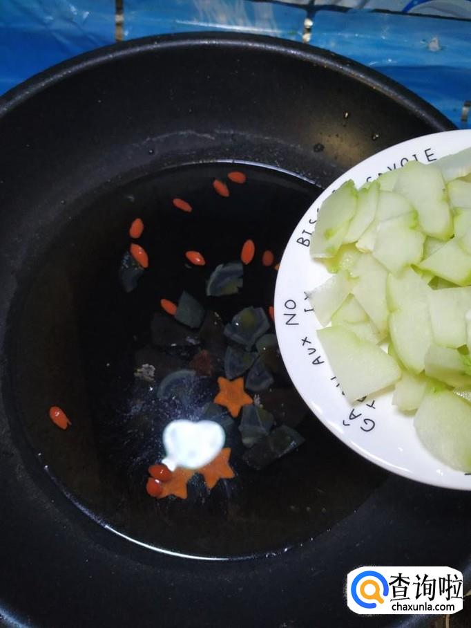 准备适量枸杞子,用清水泡发,然后再将枸杞子倒入锅中。
