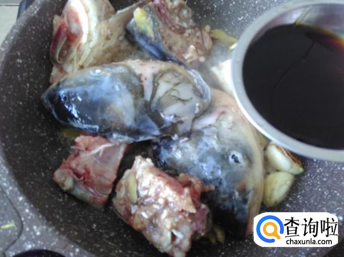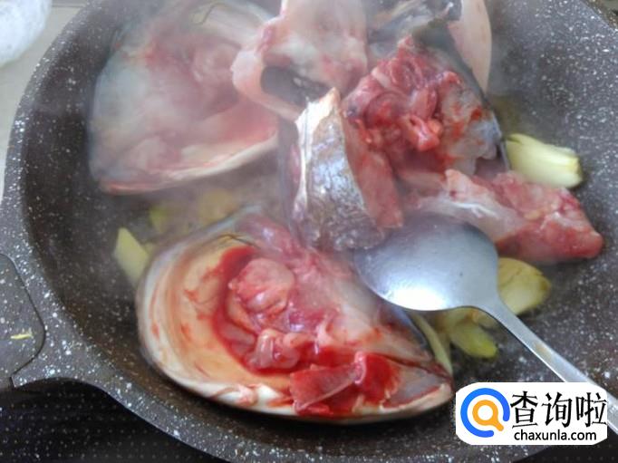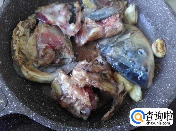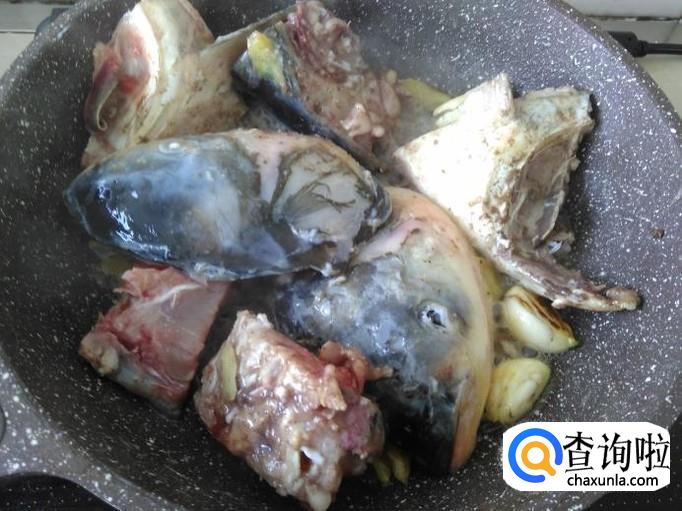 鱼头下锅翻炒一下。