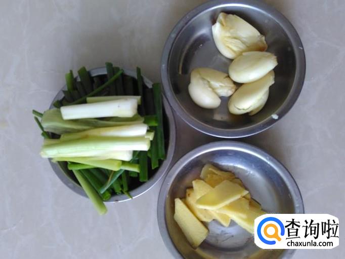 姜片、香葱、蒜米准备好。