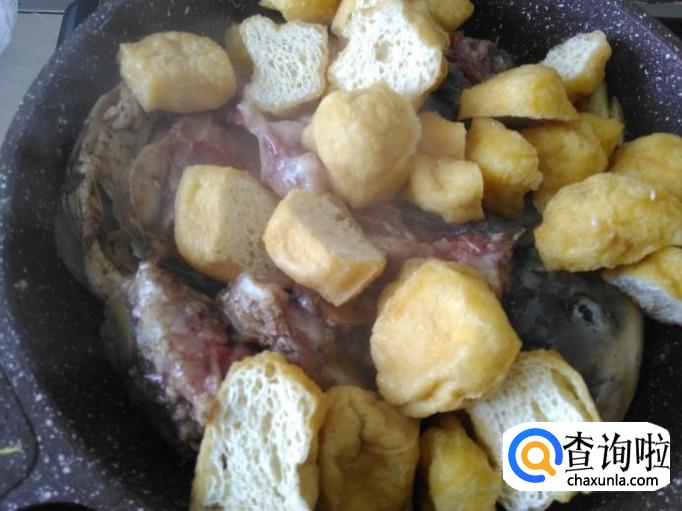 鱼头洗干净斩成一块块,豆腐泡准备好。