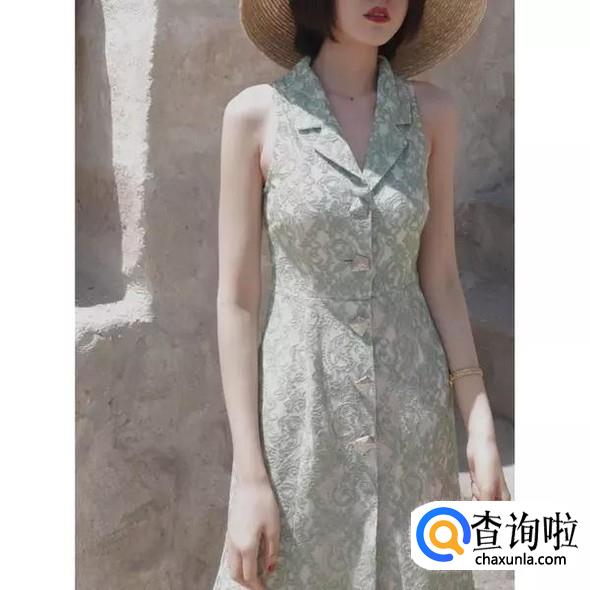 低调复古的绿色,后背打揽。胸前有木耳边的设计。裙子复古优雅,裙摆三段拼接。下图的这件吊带裙可以说是真的很好看。