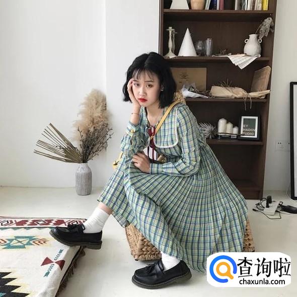裙子森系复古,领口丝带撞色,裙摆百褶纹。格子一直也是一个经典的存在。领子是方领,周围有花边。裙子腰部收腰,很显身材。