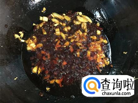 锅烧热后,倒油,放入生姜,蒜瓣,花椒,干辣椒,香辣酱炒香。