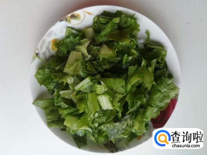 把油麦菜去掉黄叶,清洗干净,控干水份,切成2公分长的小段。