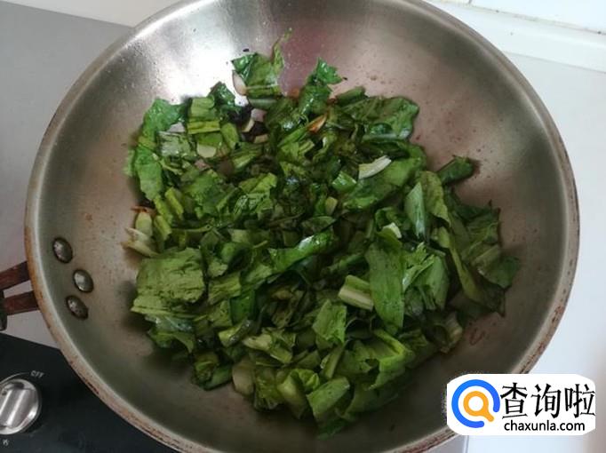 再放入油麦菜段,加入一点味极鲜姜油,调大火爆炒,大概炒一分钟就可以了,时间不能太久,否则就出水不好吃了。