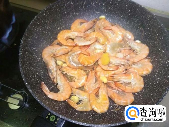 待虾炒至金黄色,可以关火出锅。