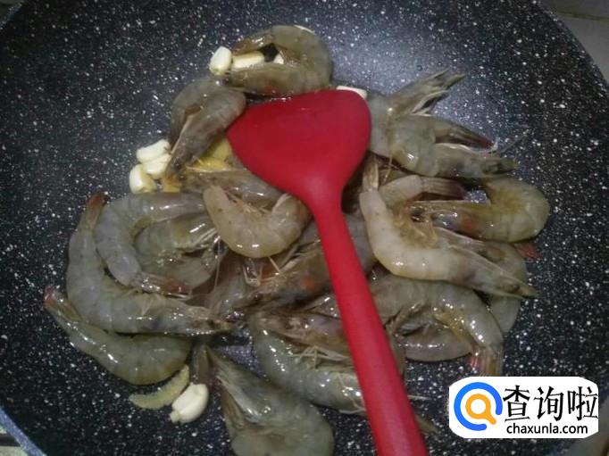 然后倒入我们腌制好的虾,继续翻炒。