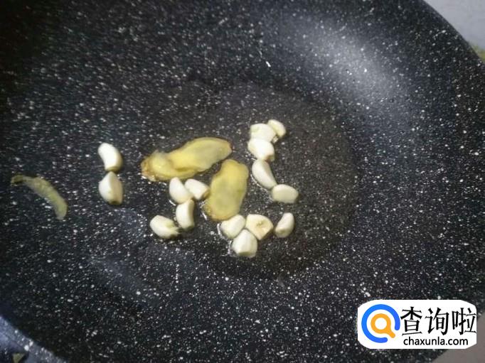 往锅中倒入食用油,待油烧热,加入姜和蒜爆炒。