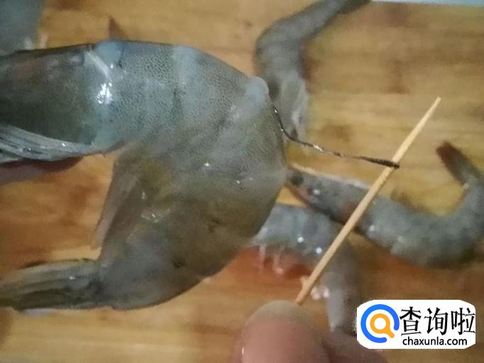然后用牙签把虾线剔除。
