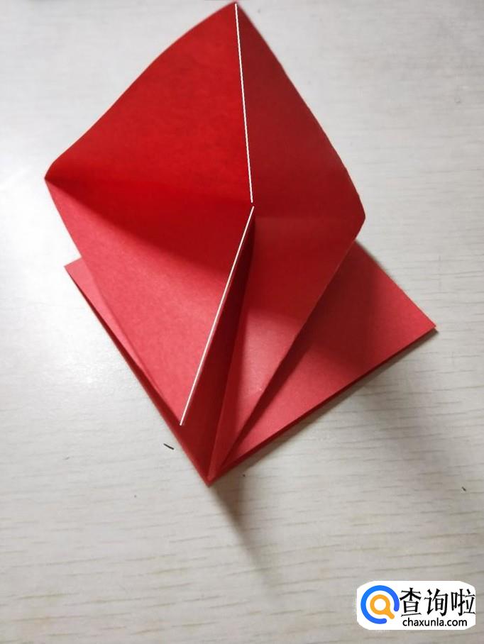 再次翻折,使白色三角形重合,对面的同样折法。