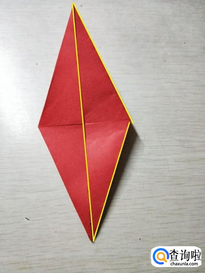 将黄色三角向左翻折,同理,对面的也要翻折。
