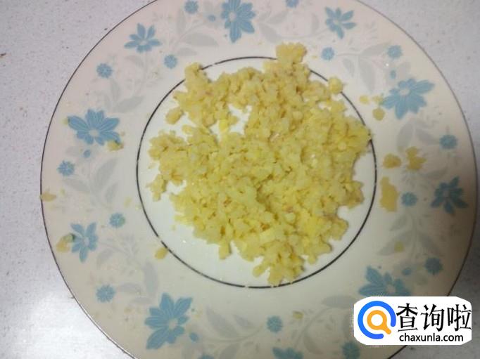 姜去皮,用水清洗干净,控干水分,剁成碎末。
