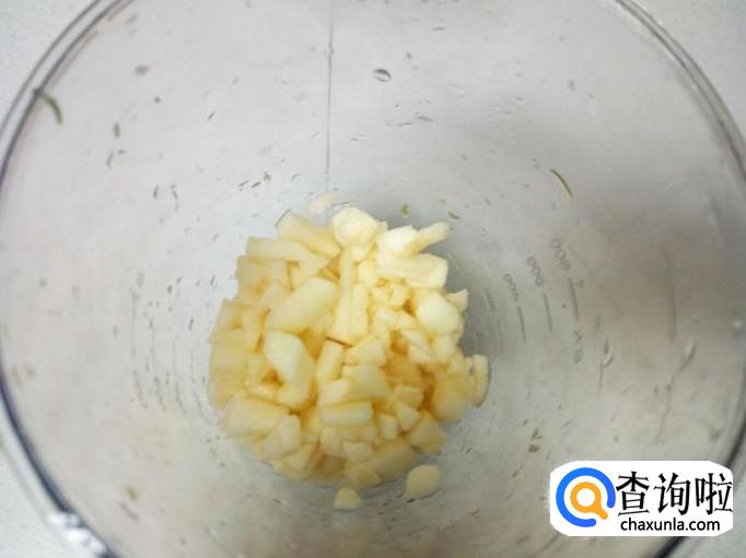 把切好的苹果小块,也放入榨汁机里面搅碎。