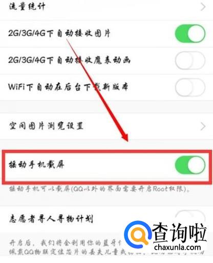 然后点击开启摇动手机截屏开关,如下图所示。