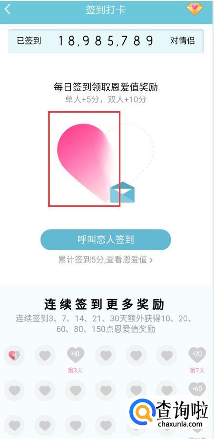 当情侣其中一人签到了只有一半桃心,两个人签到了才会组成一个桃心。