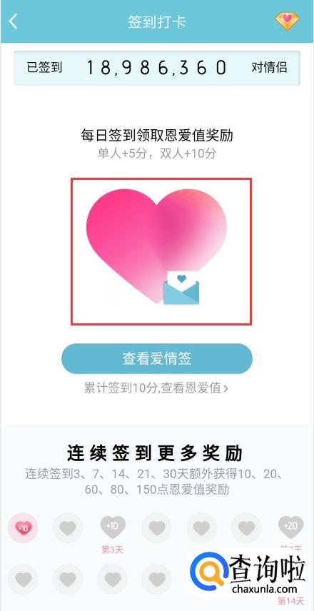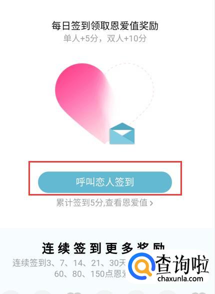 恋人签到之后,你就可以看到你们的心是一个整的了,爱情签就完成了,每天都可以签一次。