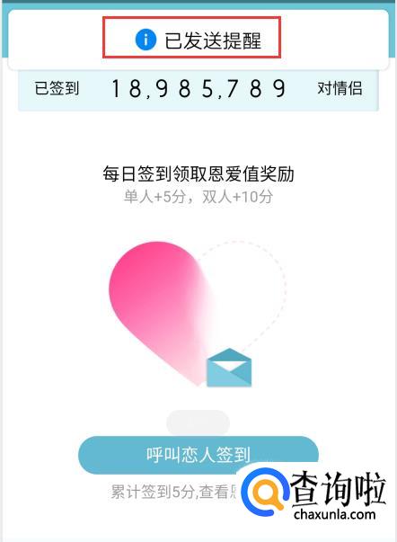 点击呼叫恋人签到,呼叫成功顶部会有提示。