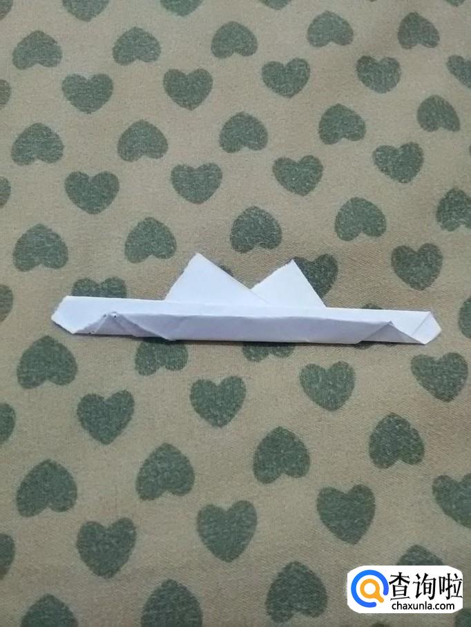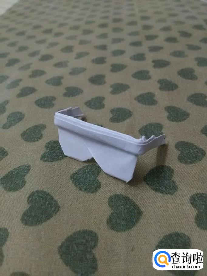 把下面的边再往上折一次,折成一个细长条,当作眼镜腿。