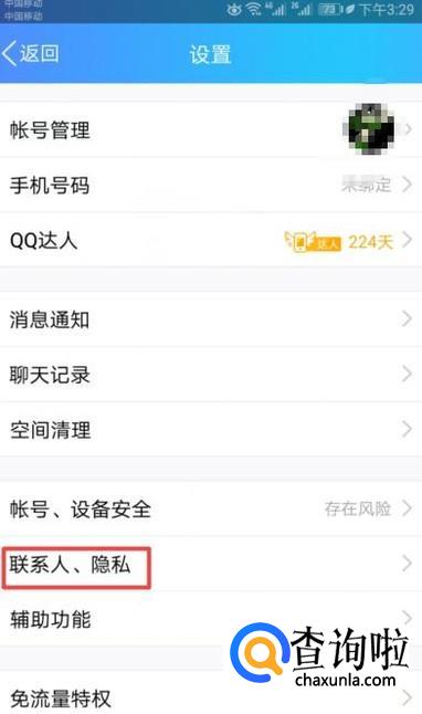 弹出的界面,我们点击联系人、隐私;