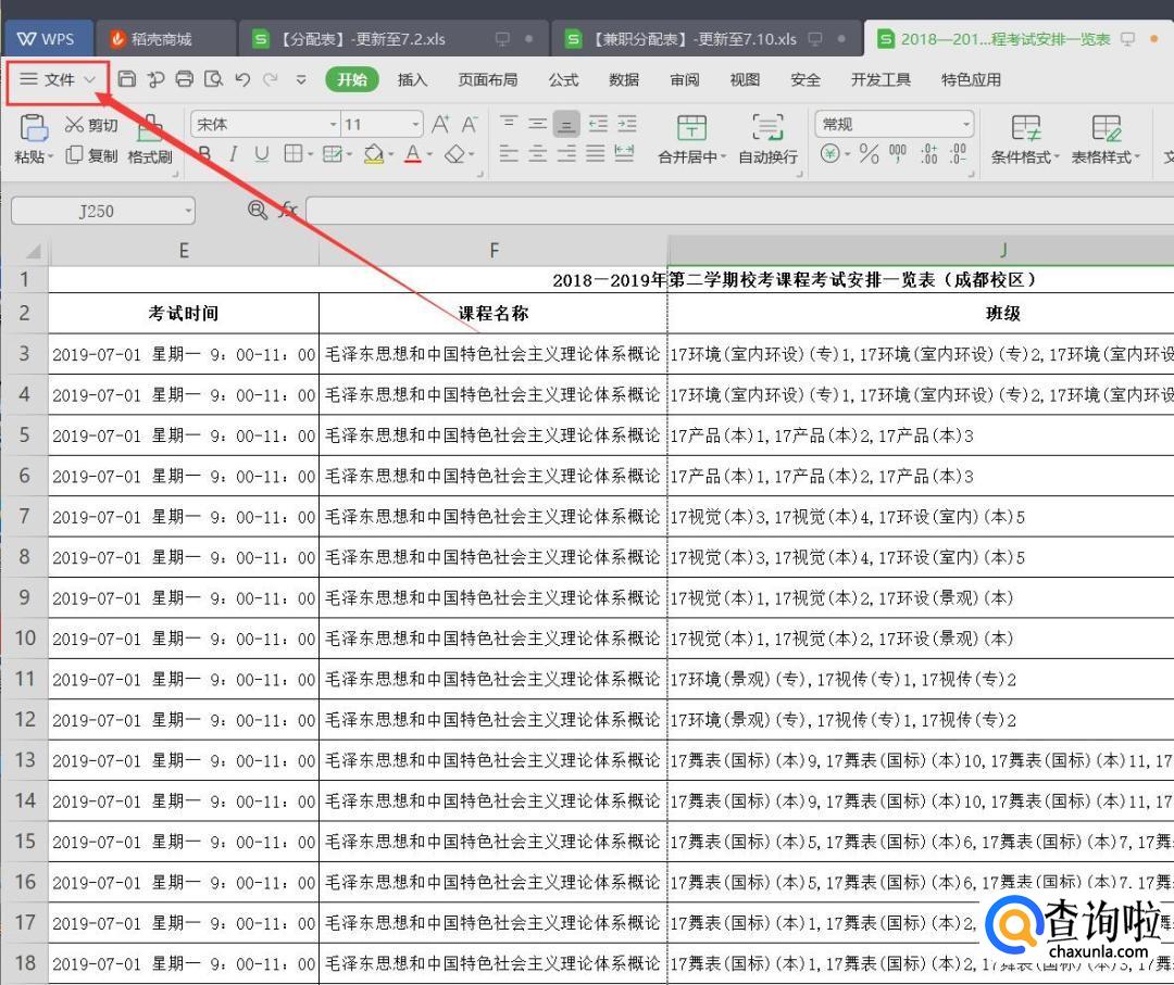 我们首先打开需要打印的表,在里面点击左上角的‘文件’。