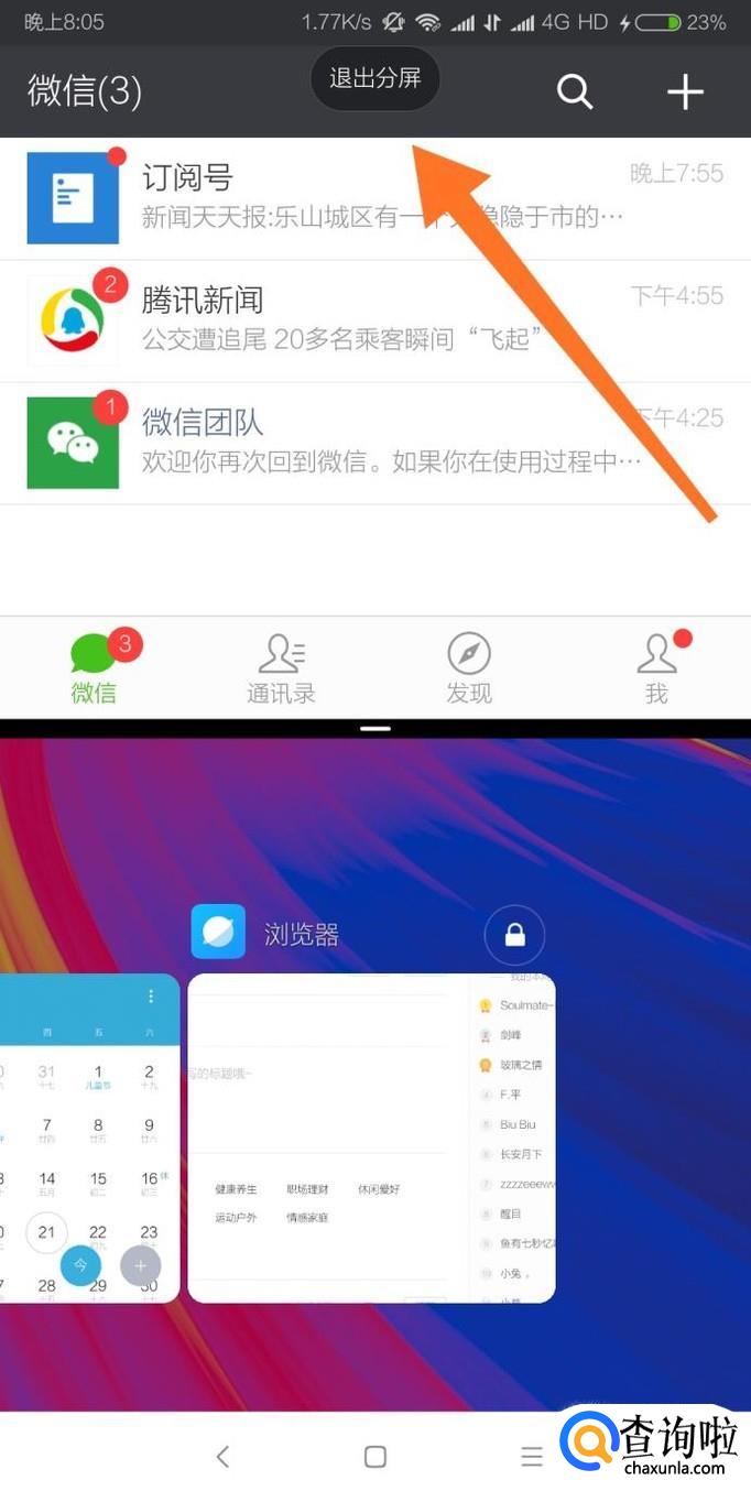 如果需要退出分屏模式,在分屏状态下点击菜单键,然后点击屏幕上方的“退出分屏”即可。