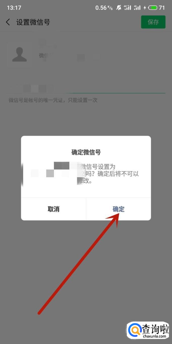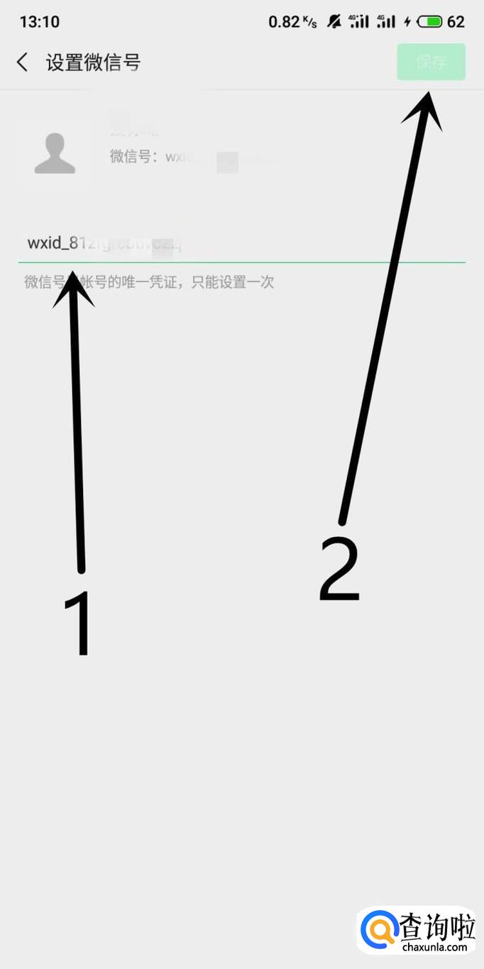 进入之后,在图示位置输入想修改的微信号码,点击“保存”,如图所示。