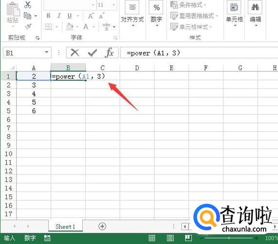 在power函数内我们选择输入的数据作为n次方的底数,如图所示: