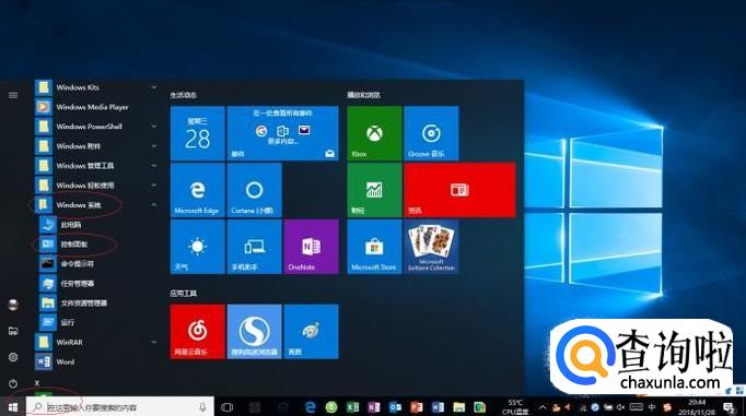 拖动右侧垂直滚动条,选择"Windows 系统→控制面板"项。
