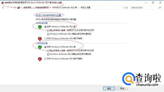勾选"启用Windows Defender 防火墙"单选框,完成电脑课不受老师控制的操作。