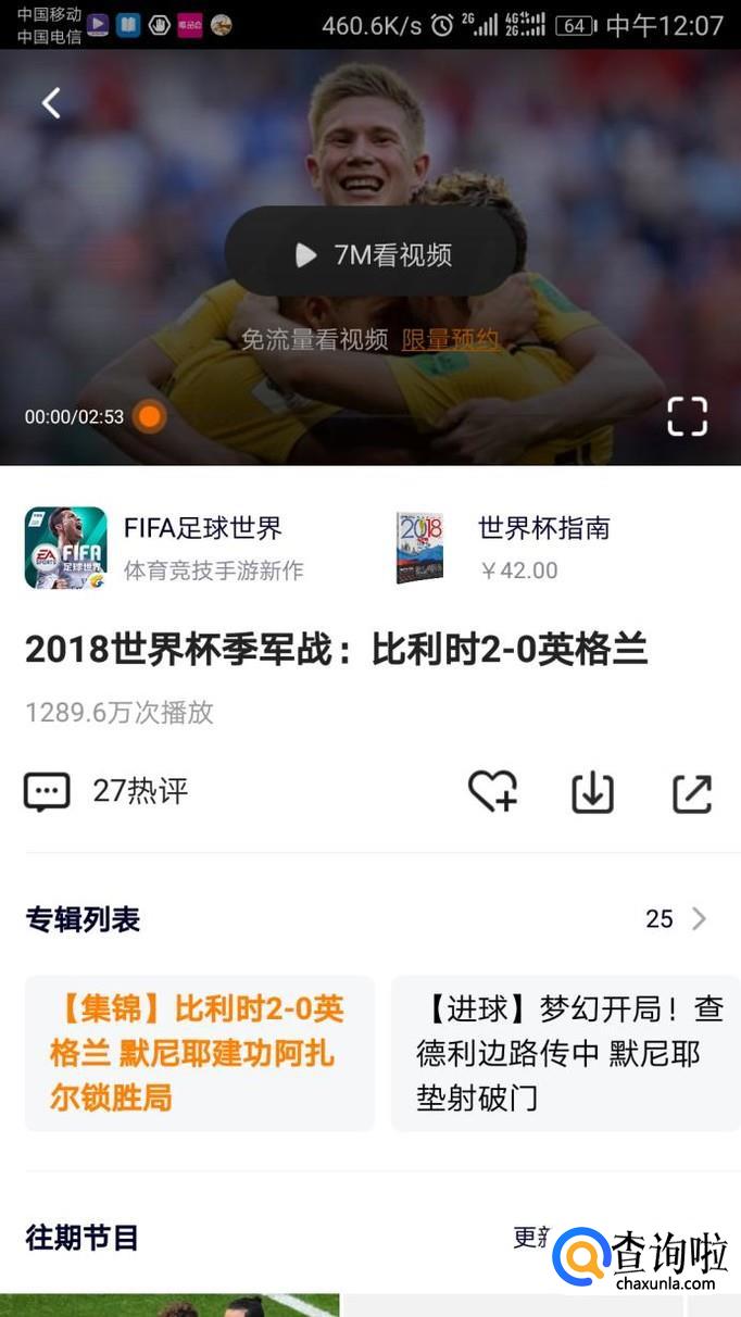 在新出现的页面中点击你想看的世界杯视频,打开它,找到右下角的视频清晰度切换处