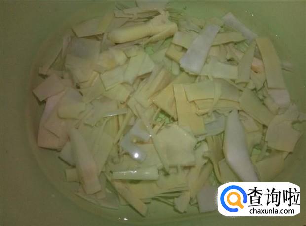 竹笋买的是提前泡好的,没有泡过的竹笋,吃起来是苦苦的,所以竹笋一般要泡一天一夜,中途要多次换水,才好吃的哦。