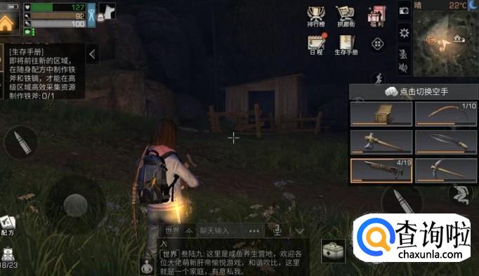 采集石头也是有专门的工具的,所以在采集石头的时候要将手上的工具换成石镐,用于采集石头。