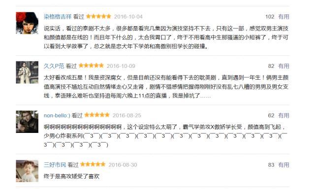 尽管是作为一部同性爱情剧,《一年生》也获得了大家的好评,在豆瓣获得8.8分的好成绩,随手一截就是五星好评。