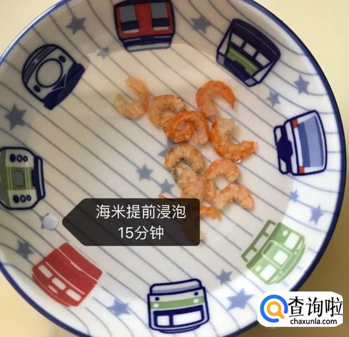 然后将海米提前用水浸泡15分钟,如下图所示。