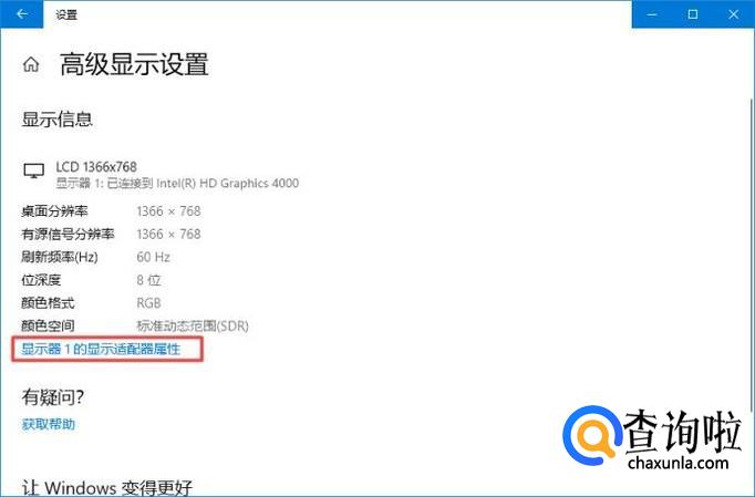 之后点击显示器1的显示适配器属性;