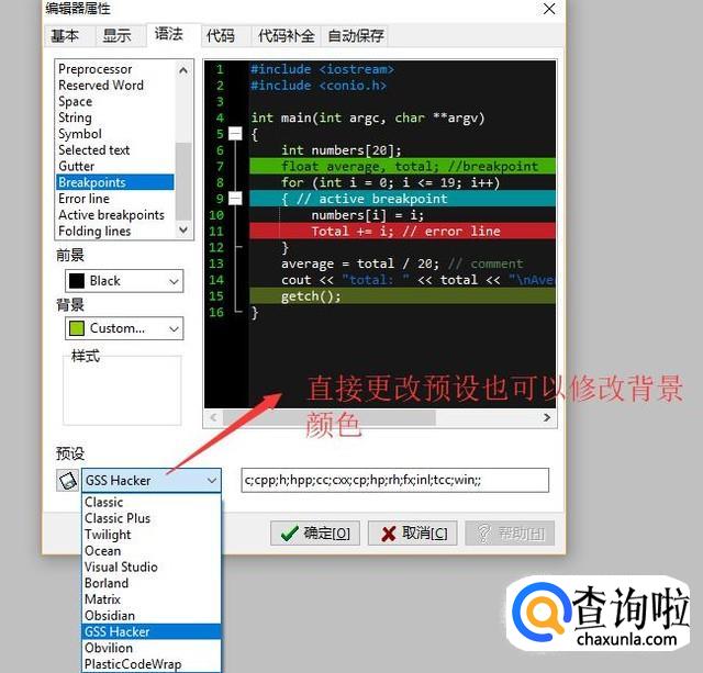 另外你也可以通过更改预设的主题类型来改变编辑器的背景颜色,如下图所示