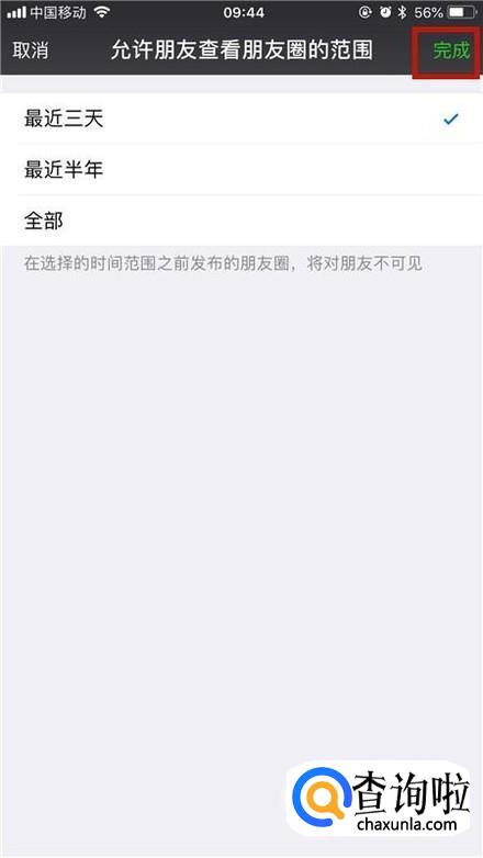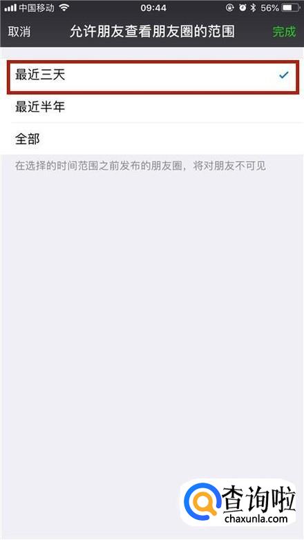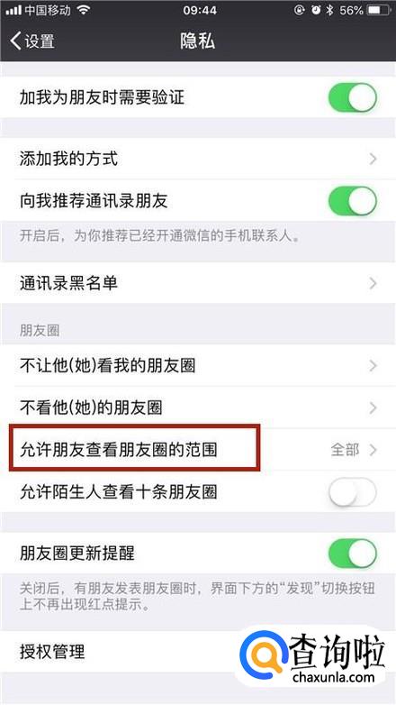 然后点击允许朋友查看朋友圈的范围,如下图所示。