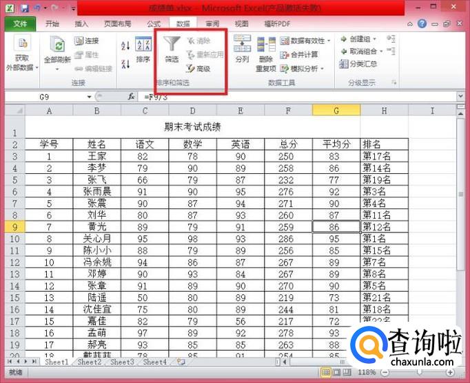 打开“数据”选项卡,找到筛选,并单击