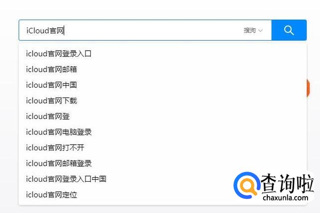首先在搜狗浏览器中输入“iCloud官网”并点击回车键,如下图所示。