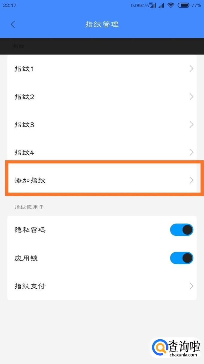 点击“添加指纹”,然后输入锁屏密码录入指纹,即可用新的指纹解锁私密便笺。