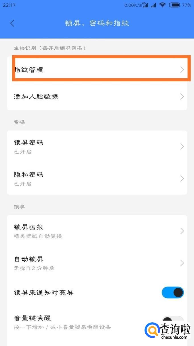 进入设置,找到“锁屏,密码与指纹”,点击进入,然后点击“指纹管理”。