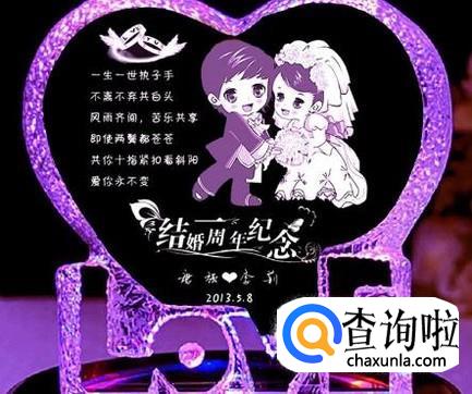 结婚纪念日时,还可以定制一个水晶立牌,写上对两人的祝福语,希望两人生活幸福美满、一起白头到老。