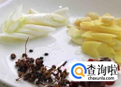 姜片、蒜米、香葱、干辣椒、花椒准备好,这些配料去味都是非常强。