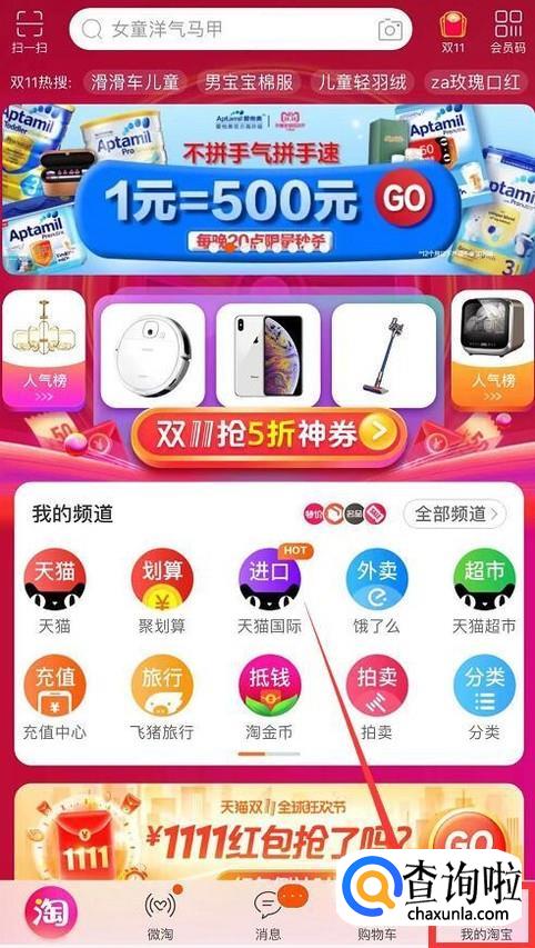 进入手机淘宝APP后,点击右下角“我的淘宝”。