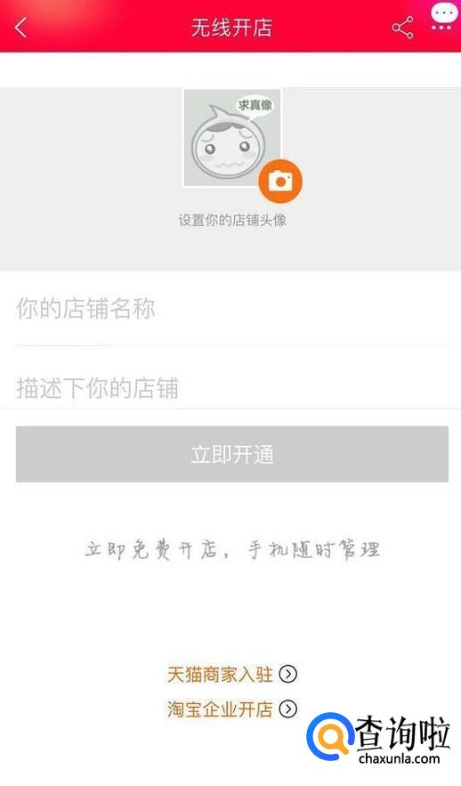 进去以后需要设置店铺头像,并输入店铺名称、店铺描述。输入完成后,点击“立即开通”。