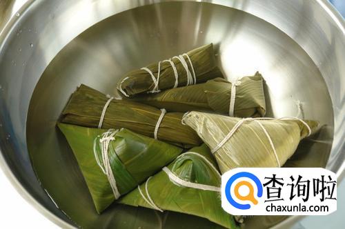 系好的粽子放入锅中,水要没过粽子。