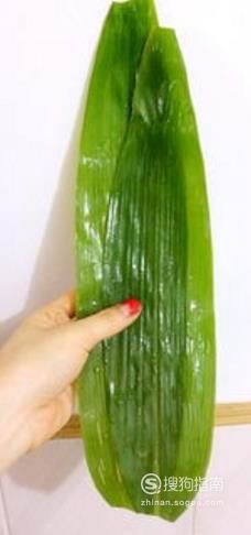 干粽叶提前一天泡发,把粽叶的两面擦洗干净,若是新粽叶浸泡擦洗干净即可。